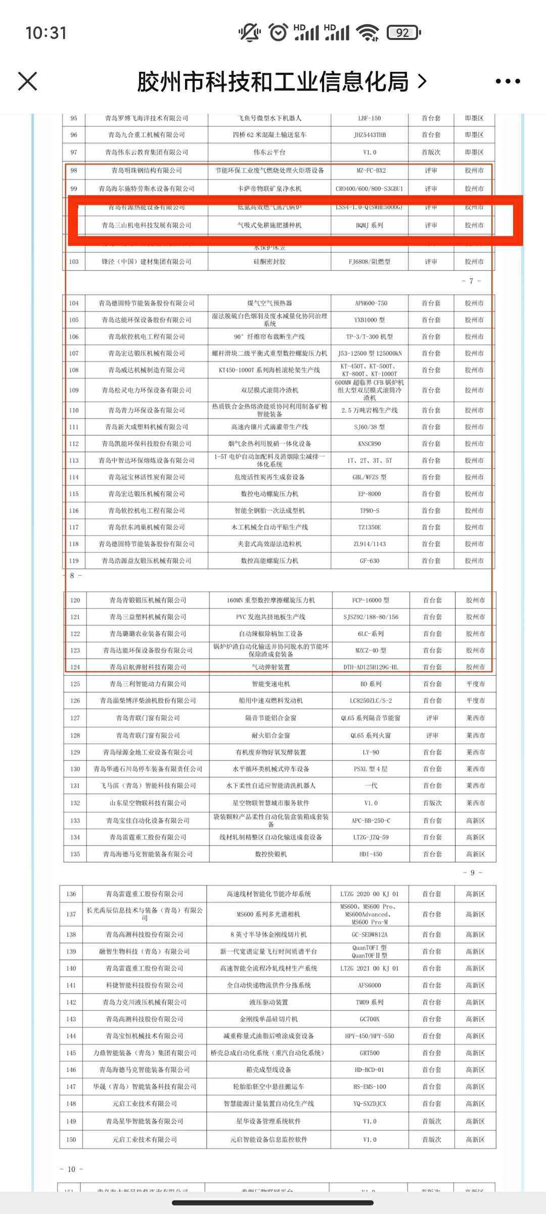 2022年1月,公司机电以高强的研发创新能力、高质量产品和高效的生产能力,第3次获取了“青岛市“专精特新”企业”,由青岛市民营经济发展局和青岛市中心小企业局颁发资质证书。
