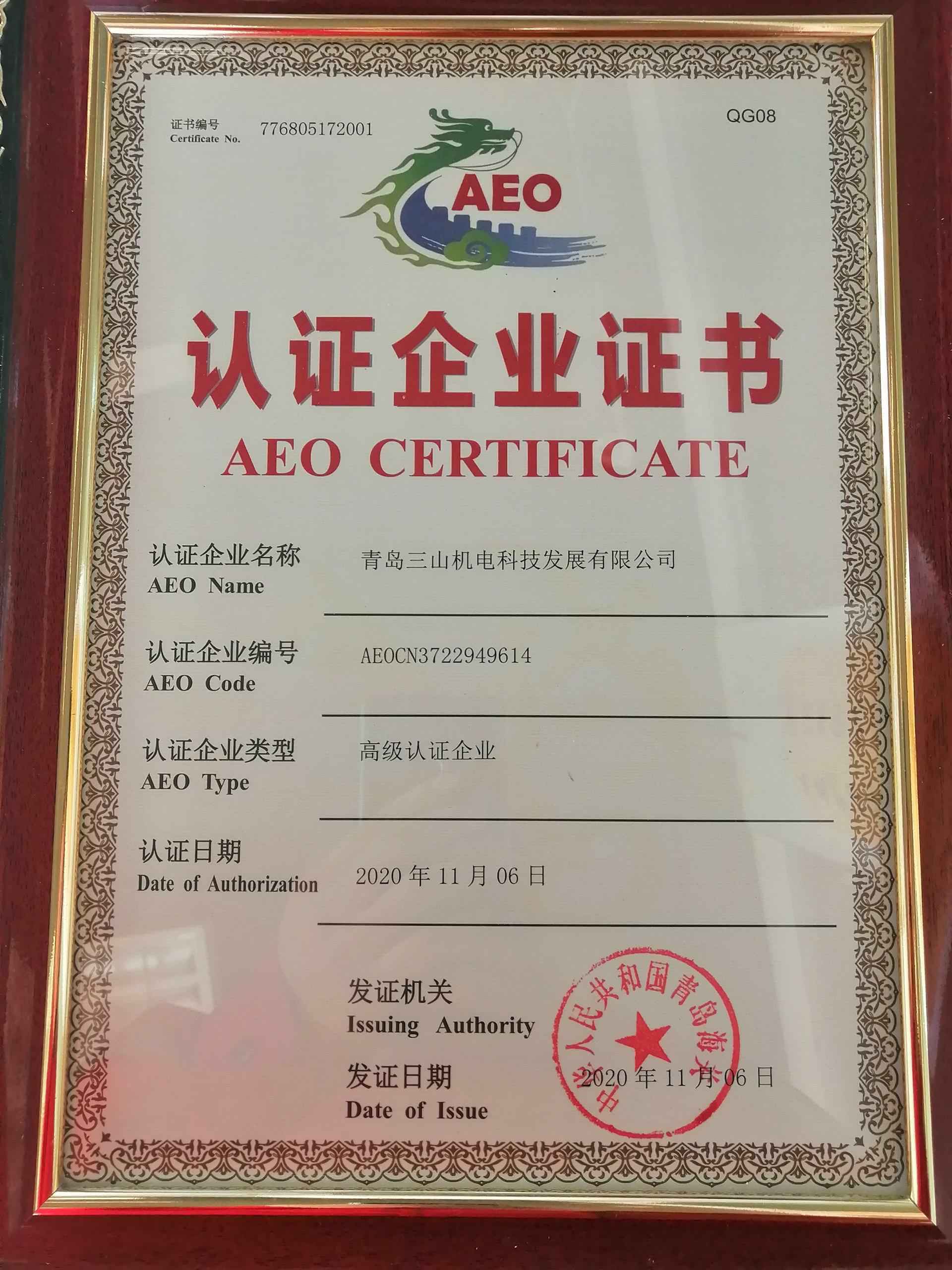 2020年10月,青岛上合示范区—青岛海关联合助推贸易便利提升、中欧班列发展、叠加建设TIR国际道路运输集结中心+国际联动综合港,开展RCEP海关监管服务创新先行先试企业示范活动,中华人民共和国青岛海关授予公司机电AEO(经认证经营者)为上合示范区首批经核准出口商,并颁发我司AEO高级认证企业证书,董事长王颖奇作为优秀企业代表在授牌仪式上进行了发言。