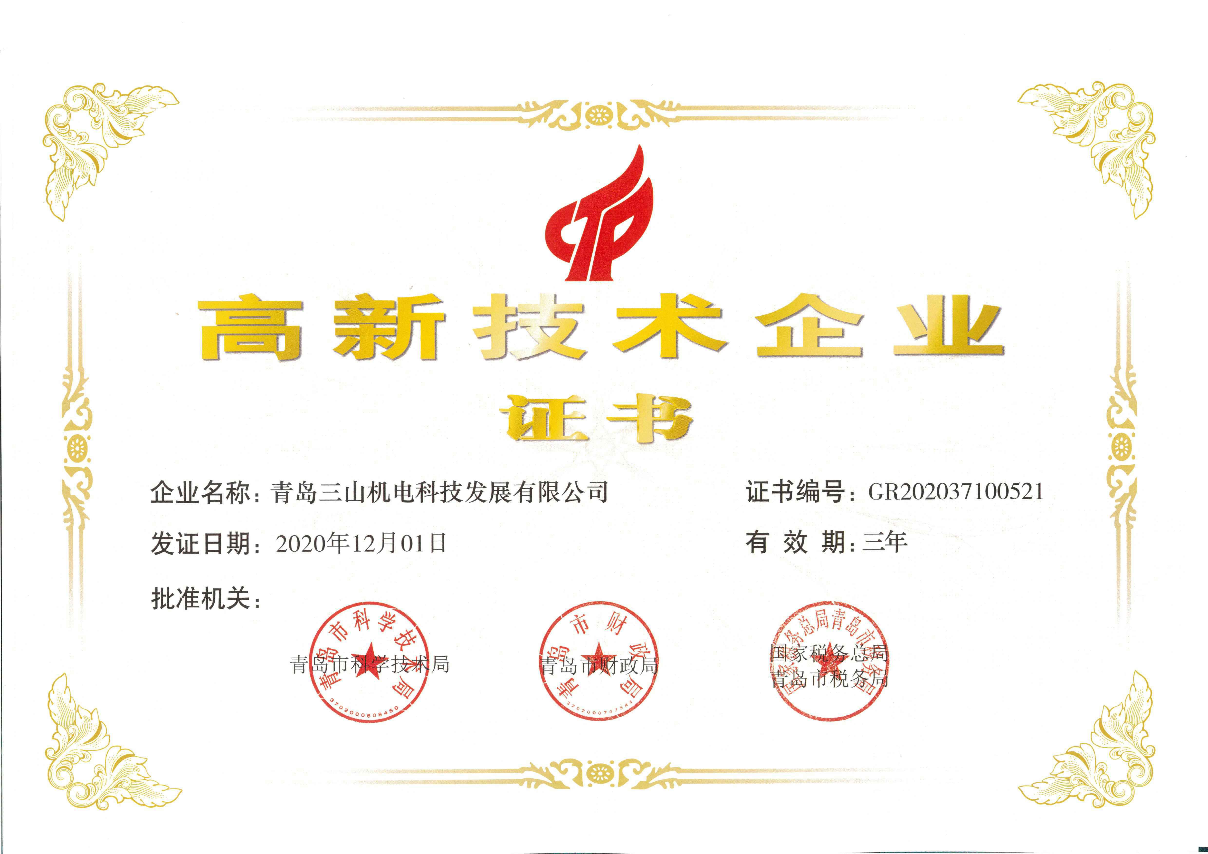 2020年12月,公司一直持续进行研究开发与技术成果转化,通过对公司技术创新、生产研发、专利数量、产值增幅等各项指标的综合复审,公司再一次通过了高新技术企业的评审认定工作,由青岛市科技技术局、青岛市财政局、国家税务总局青岛市税务局联合颁发授予企业 “高新技术企业”证书,提高了企业的美誉度,享受了税收减免优惠政策。