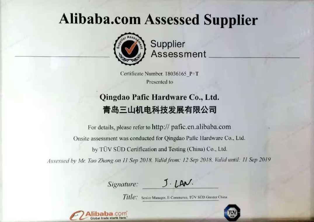 2018年9月,公司以持续增长的销售额占比和高质量的优质产品供应,通过了阿里巴巴网站的金牌供应商评估,荣获阿里巴巴颁发的“金牌供应商”荣誉称号。
