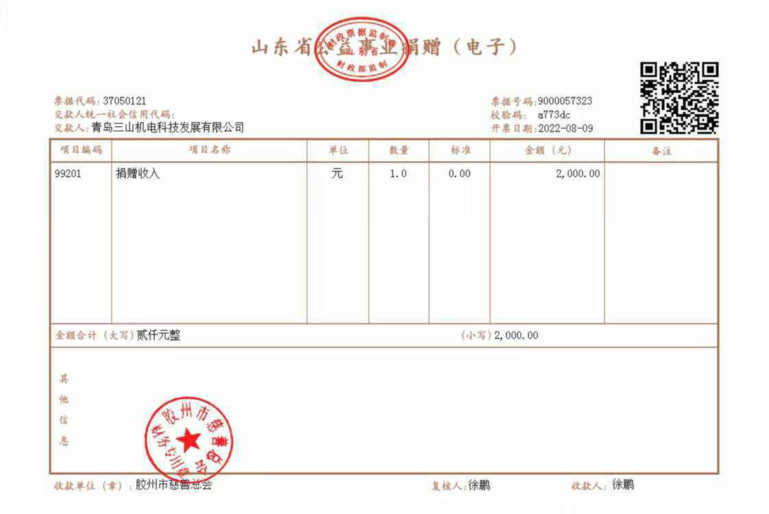 在胶北政府的组织下,公司公司作为胶北工业园的纳统规上企业之一,积极参与政府的各项爱心捐赠活动,每年定期参加“胶北政府慈善一日捐活动”,捐献爱心基金达15年。